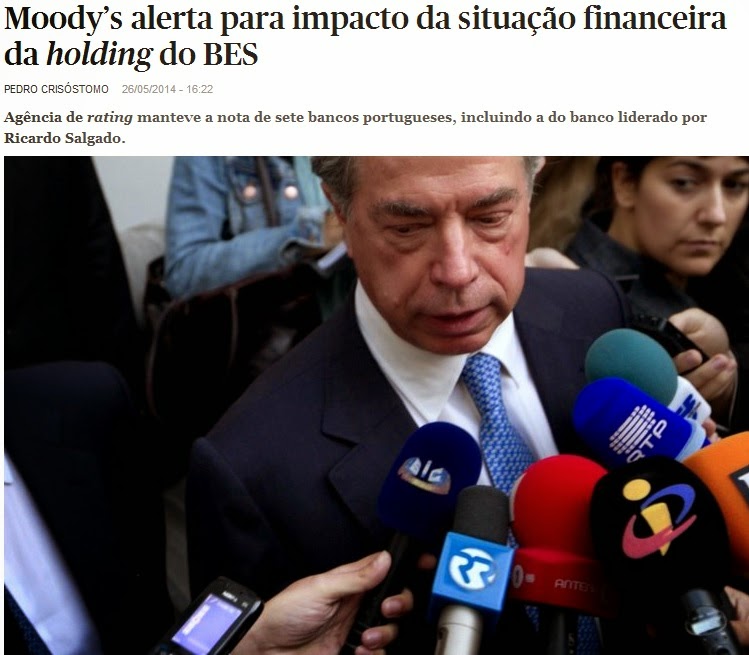 O artigo de hoje: O prospecto do aumento de capital do BES é um hino aos erros de gestão da banca portuguesa nos últimos 15 anos. Erros que nós, jornalistas, não fomos capazes de investigar e analisar (pese embora algumas excepções: BPN, BPP...). Em vez disso passámos anos a dizer que os bancos portugueses eram muito bem geridos. E mesmo quando começaram a soar os alarmes (1 - denúncia das irregularidades no BCP; 2 - imposição de aumentos de capital pelo Banco Central Europeu; 3- reserva, pela Troika, de 12 mil milhões de euros para recapitalizar os bancos) mantivemos os elogios. Agora, com a divulgação da "situação financeira grave" em que se encontra a Espírito Santo International (pf leia o prospecto do aumento de capital, no site da CMVM(), holding que controla o grupo GES, percebemos a dimensão dos problemas que não denunciámos.